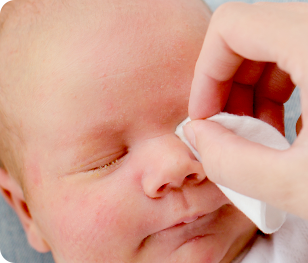 Sostén la cabeza de tu bebé, limpia suavemente con un pomo de algodón (son ideales porque no dejan pelusas) o gasa, humedecido con agua tibia alrededor de cada ojo. Siempre limpia desde el lagrimal hacia afuera. Si no hay lagañas, no es necesario lavar el área de los ojos. No limpies dentro de los ojos.